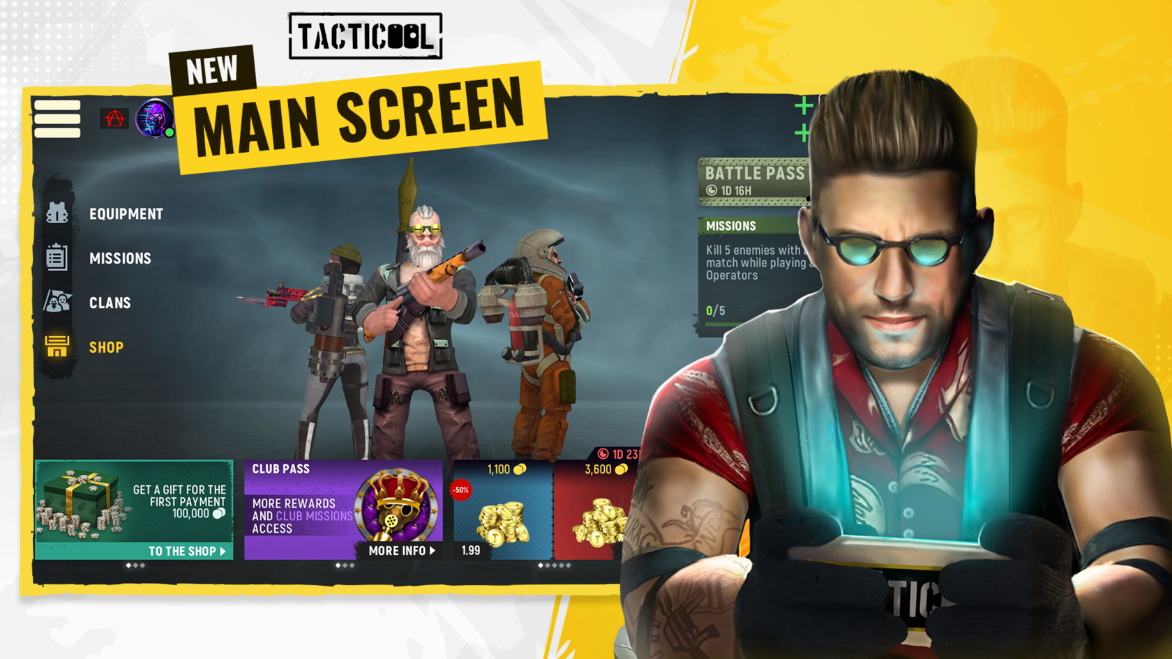 • Introducing Tacticool’s new main screen! We’ve completely redesigned many UI elements to make it easier to find the tabs you need, so that key information is always at your fingertips.
