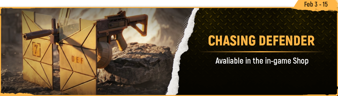 Grab the new machine gun in the "CHASING DEFENDER" event, available in the in-game Shop from February 3 to February 15.