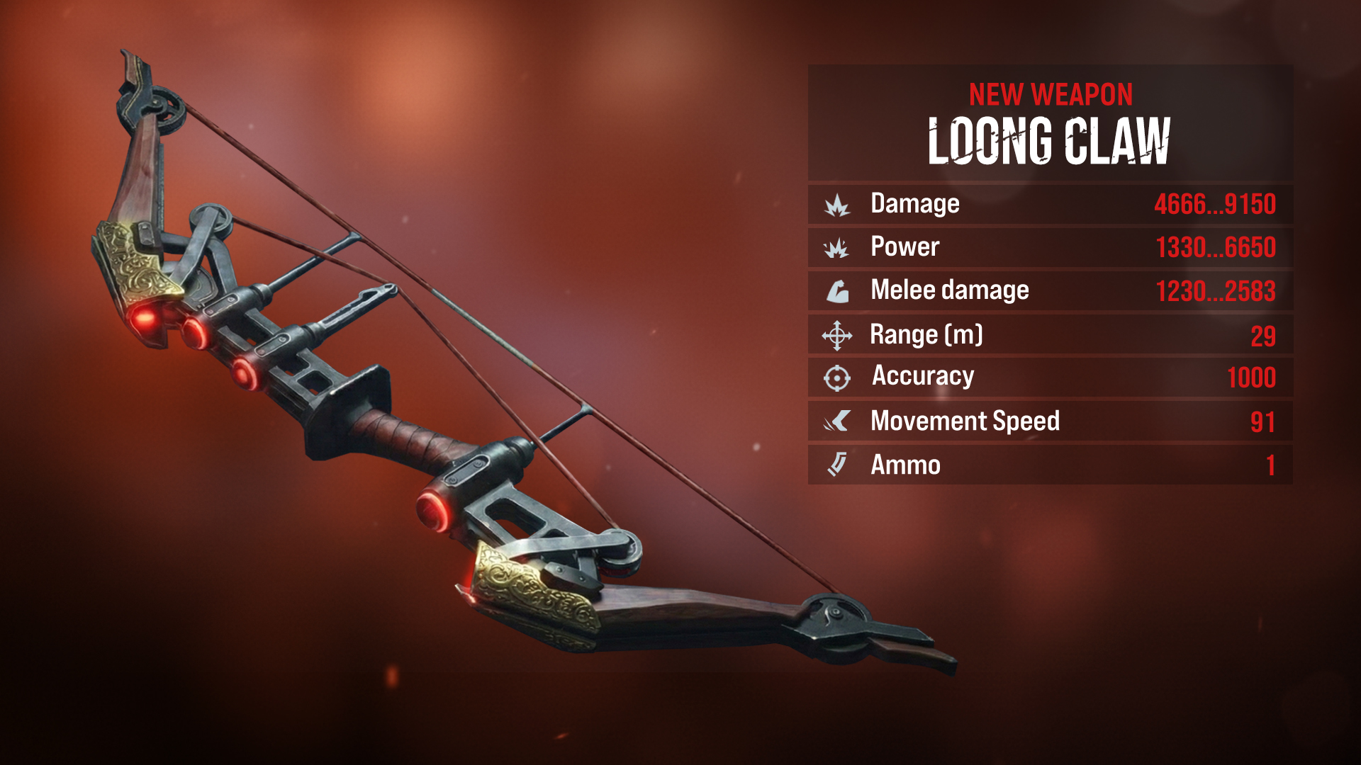 The LOONG CLAW prototype is a heavy combat bow inspired by Eastern traditions. It stands out with increased melee damage and impressive long-range capability. A distinctive feature of this model is its special visual effects when shooting. Arrows equipped with the Bow Arrow Landau mod explode in a particularly epic fashion. 不僅要高效擊敗敵人,還要打得漂亮!