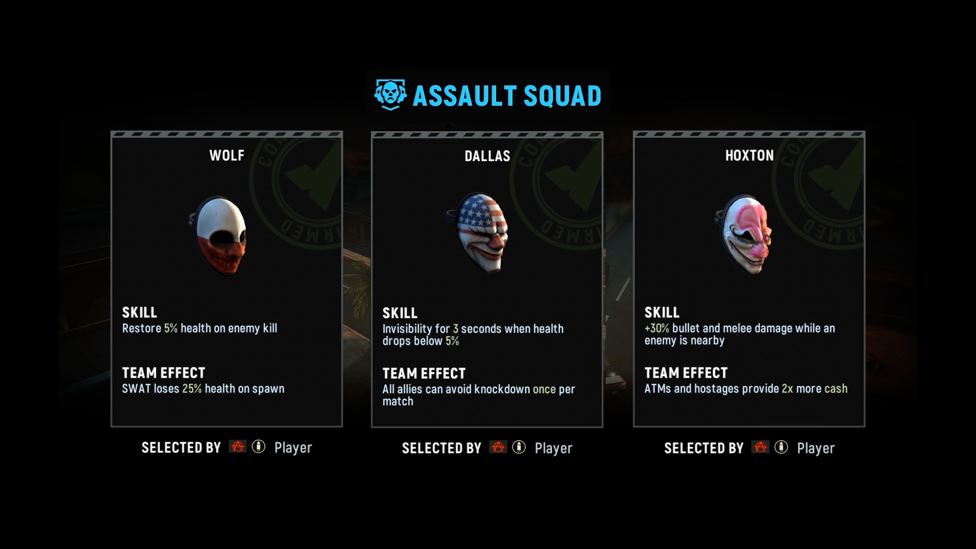 The BANK ROBBERY mode, as part of the collaboration with PAYDAY, features a new mask-based mechanic where you can select a mask of one of the PAYDAY Gang members for the robbery. The mask gives you not only a stylish and recognizable look, but also unique skills and team effects. These bonuses will help you and your squad successfully extract the loot during the heist.