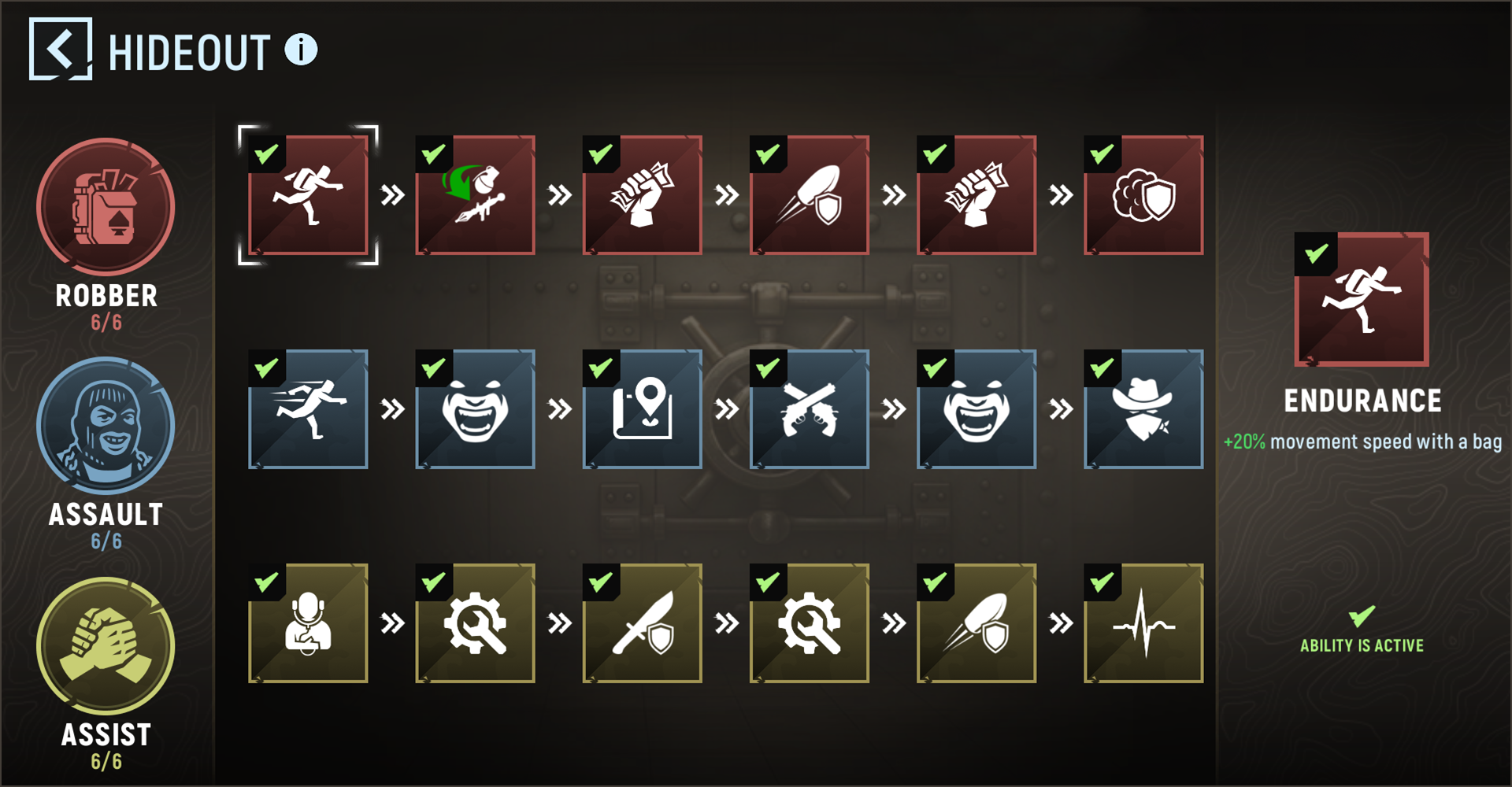 During the event, the HIDEOUT returns to BANK ROBBERY mode — unlock upgrades to make your heists faster, smoother, and more rewarding. Unlocked research is activated automatically and stacks with mods, talents, and upgrades. Now you only need Toxicoins to unlock new research!