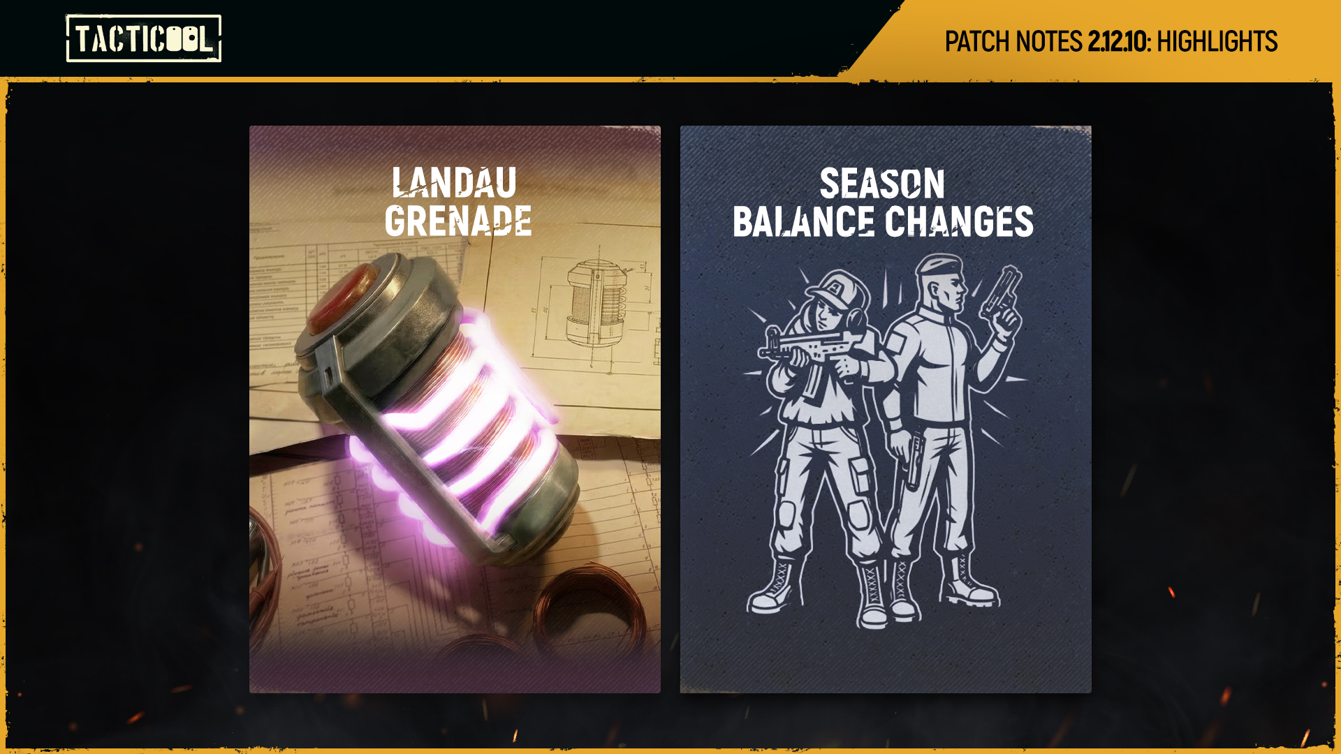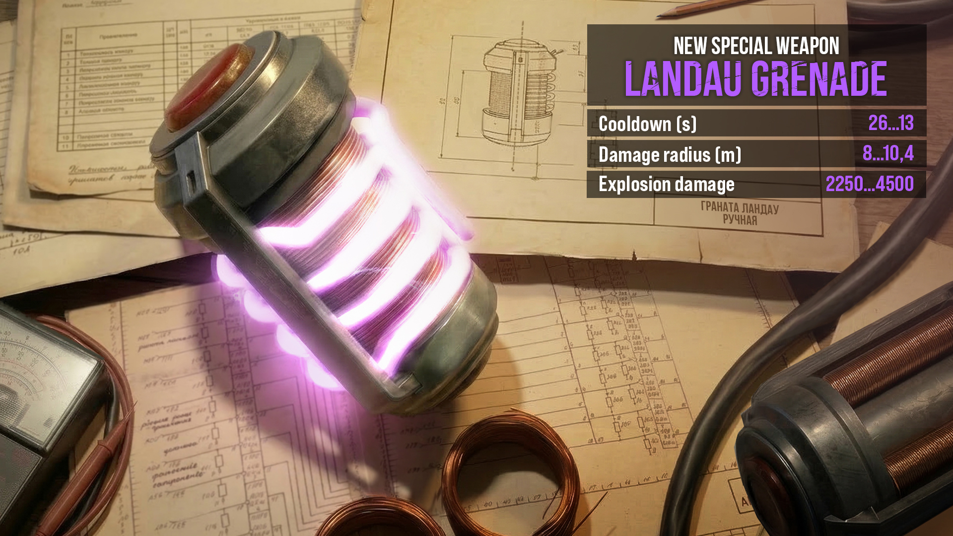 A new addition to the arsenal. Take control of the battlefield in a whole new way. The special weapon LANDAU GRENADE pulls objects toward itself, dealing area damage. Physics rules. Especially in Tacticool.